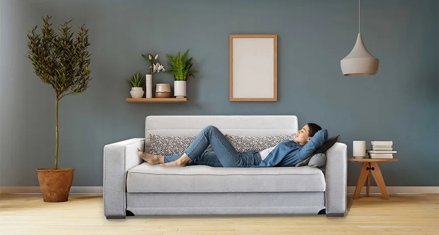 Καναπές - Διπλό Κρεβάτι - Αποθηκευτικός χώρος. Ο καναπές-κρεβάτι SIESTA συνδυάζει έξυπνα την κομψότητα ενός μοντέρνου καναπέ, την άνεση ενός διπλού κρεβατιού και την πρακτικότητα ενός μεγάλου αποθηκευτικού χώρου, προσφέροντας την απόλυτη λύση "όλα σε ένα" για τον χώρο σας. Σκελετός: Mεταλλικός ηλεκτροστατικής βαφής Aποθηκευτικός χώρος: Άντιμικροβιακός Κρεβάτι: Μονό 146x130 Διαστάσεις καναπέ: Π. 163 cm Β. 102 cm Ύ. 82 cm Πόδι: Πλαστικό 12 cm ύψος Υφασμα: Αδιάβροχο και αλέκιαστο 40.000 τριβών Βάρος: 65 kg